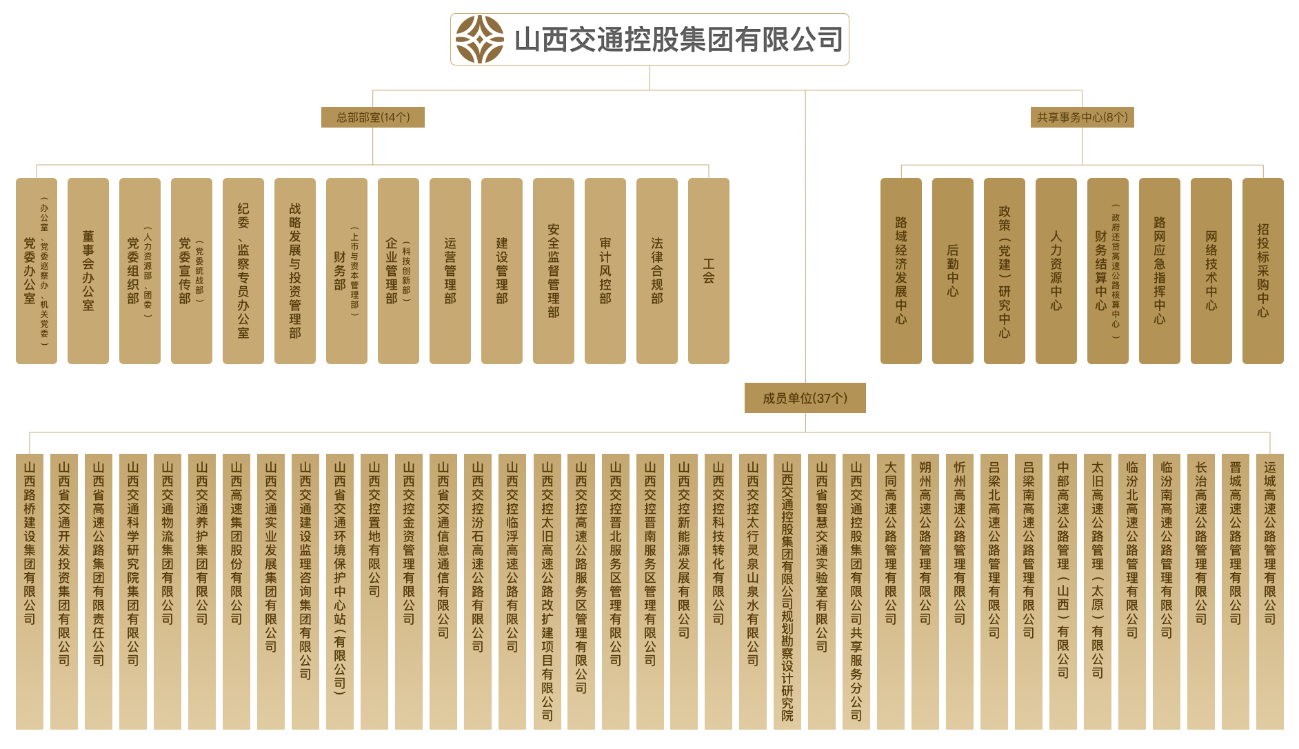 2017年11月24日正式挂牌,,,,,,,注册资金500亿元,,,,,,,资产总额超6300亿元,,,,,,,现有员工3.87万人,,,,,,,谋划管理收费公路6000公里(高速5750公里,,,,,,,一级250公里),,,,,,,占全省开通运营高速公路总里程93.3%。。 。。。。。拥有路桥集团、交投集团、交科集团等35个二级自力法人企业,,,,,,,其中1个A股控股上市公司(山西高速,,,,,,,000755.SZ)。。 。。。。。
